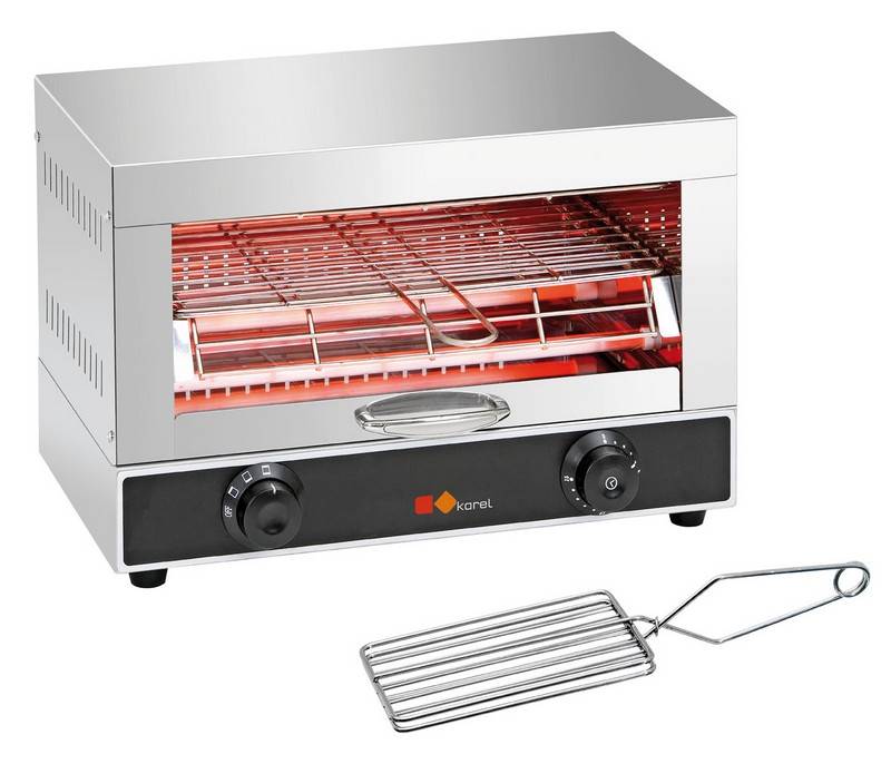 Toaster with 1 or 2 levels made entirely of stainless steel, ideal for the fast-food industry, in particular for heating sandwiches, pizzas, toast, rolls, etc.