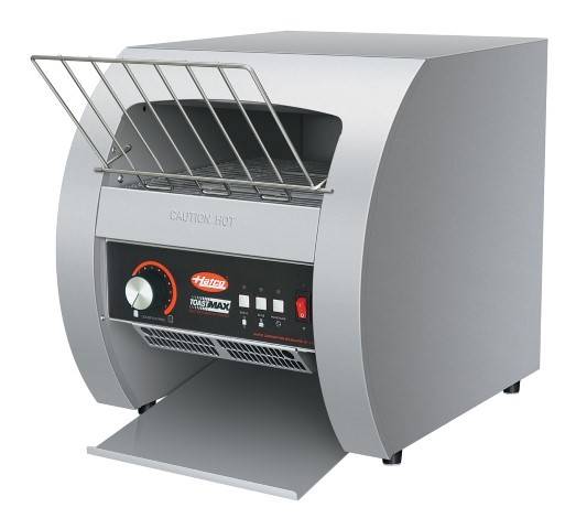 Belt toaster made entirely of stainless steel, ideal for buffet breakfasts.