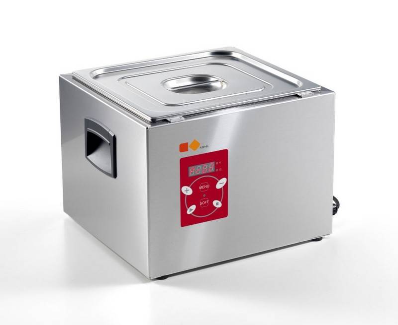 Apparecchio per la cottura a bassa temperatura con riscaldamento statico dell'acqua.